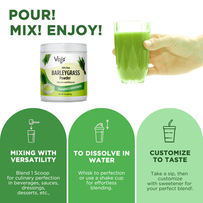 Enjoy a premium-quality barley grass juice powder for smoothies, juices, and shakes. Perfect for those seeking a plant-based, nutrient-rich superfood to promote digestion, immunity, and overall wellness.