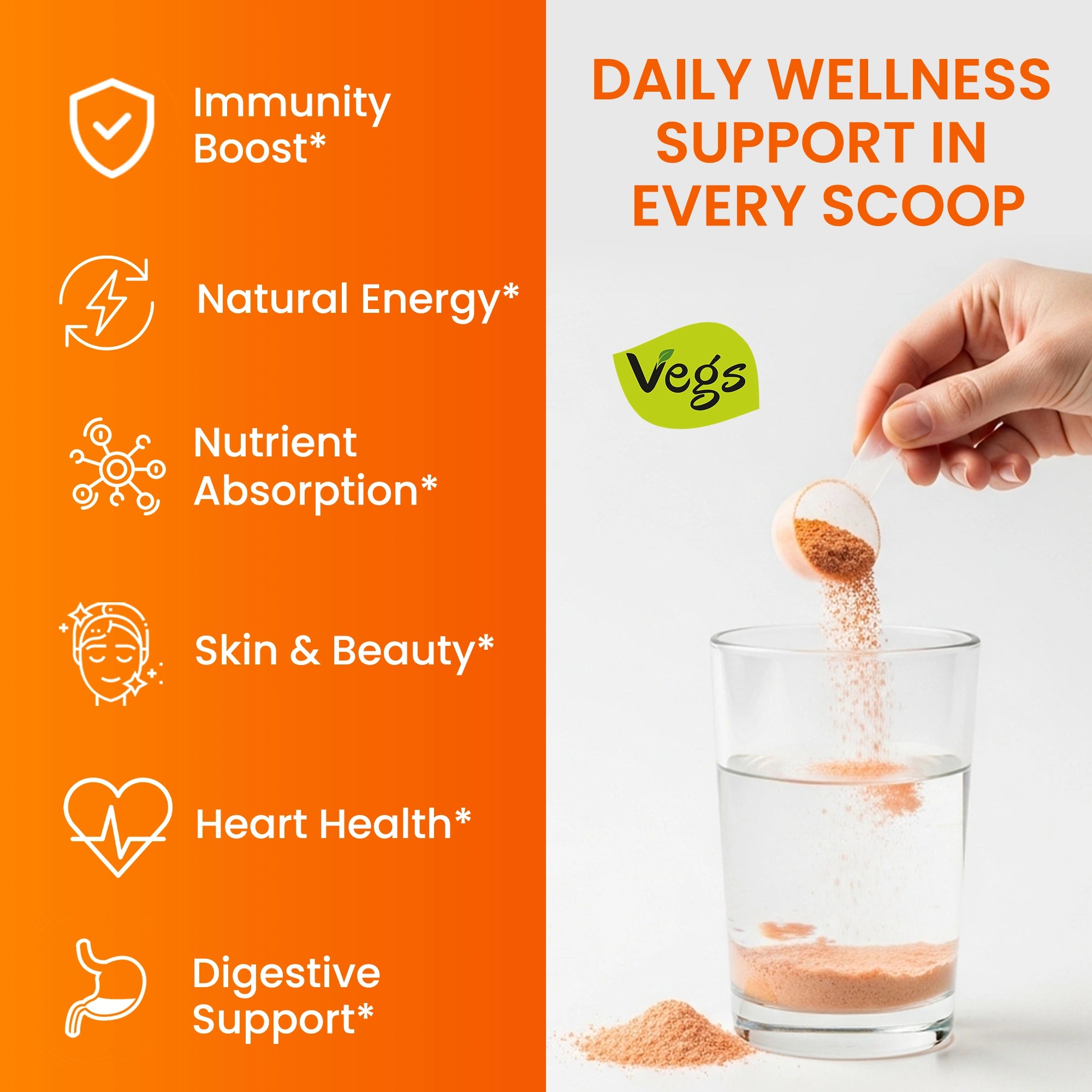 Boost your daily routine with Vegs Organic Orange Juice Powder, a premium 100% freeze-dried orange fruit powder made from pure, nutrient-rich oranges. Naturally rich in vitamin C and antioxidants, it offers a refreshing way to enjoy real citrus flavor as part of a balanced lifestyle.